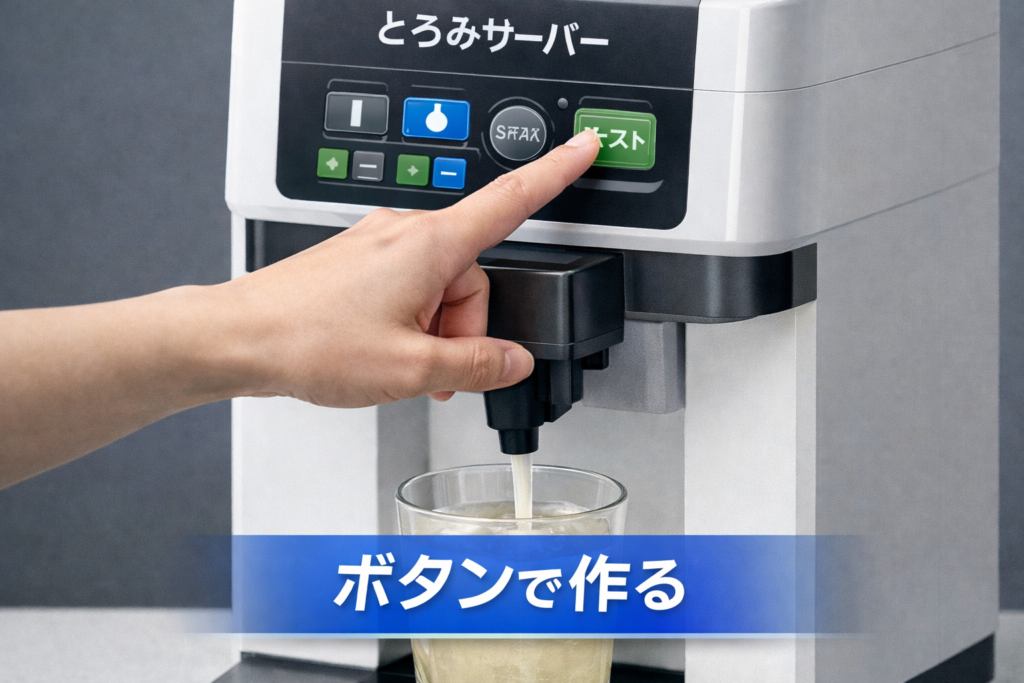 自動タイプは、専用のとろみサーバーを使用してとろみを作る方法です。 ボタン操作でとろみ飲料を作ることができるため、作業を効率化することができます。